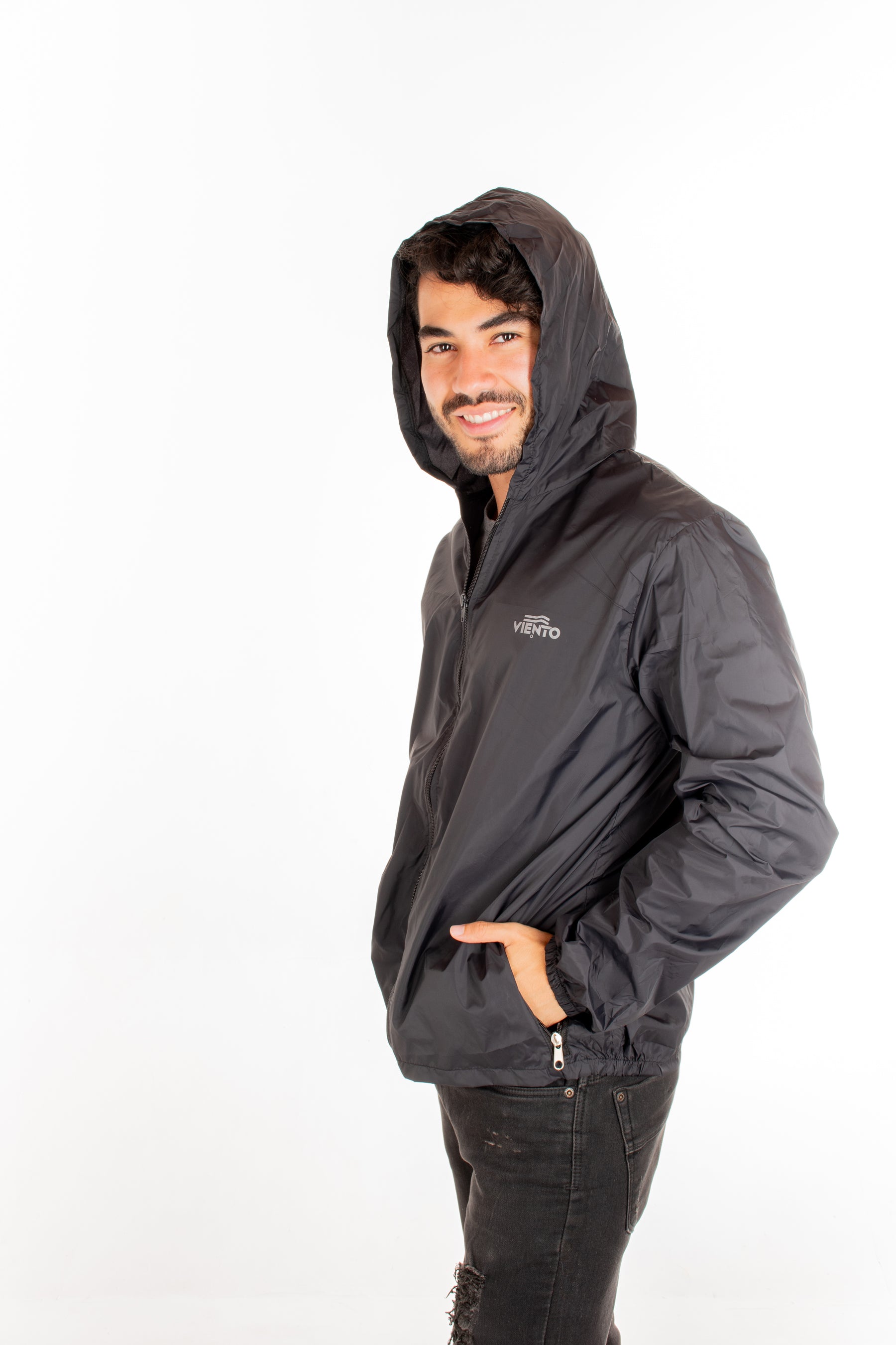 Rompevientos sencilla fabricada en Nylon, con capota, dos bolsillos laterales.